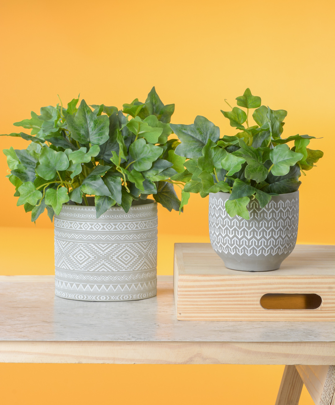 Lindo Arranjo com Folha de Hera Permanente Real Toque c/ Vaso Cerâmica cinza