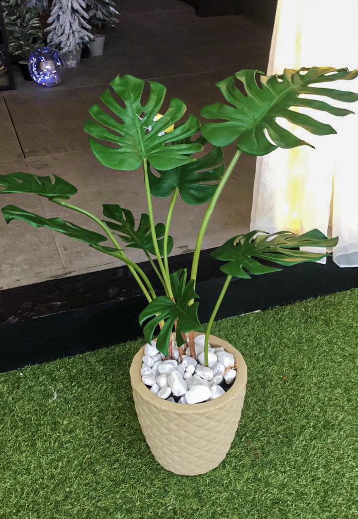 Costela de Adão Real Toque 8 folhas de 85cm de altura com pote plástico. Planta Artificial