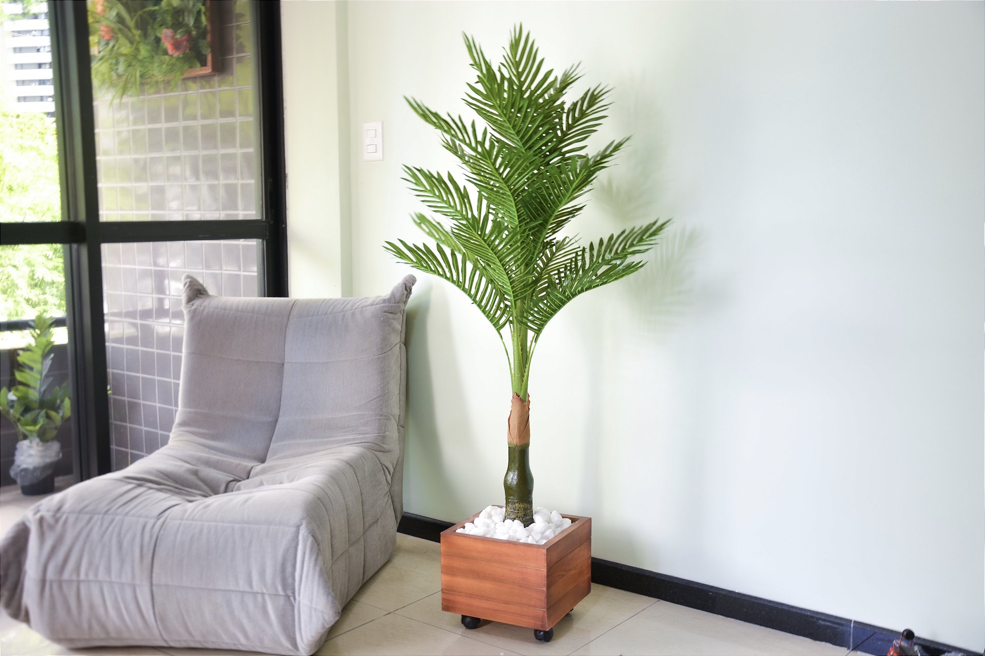 O produto é feito com tecnologia Real Toque, o que oferece aspectos naturais e beleza ao visual e ao toque, além de conter troncos com bases fixas.