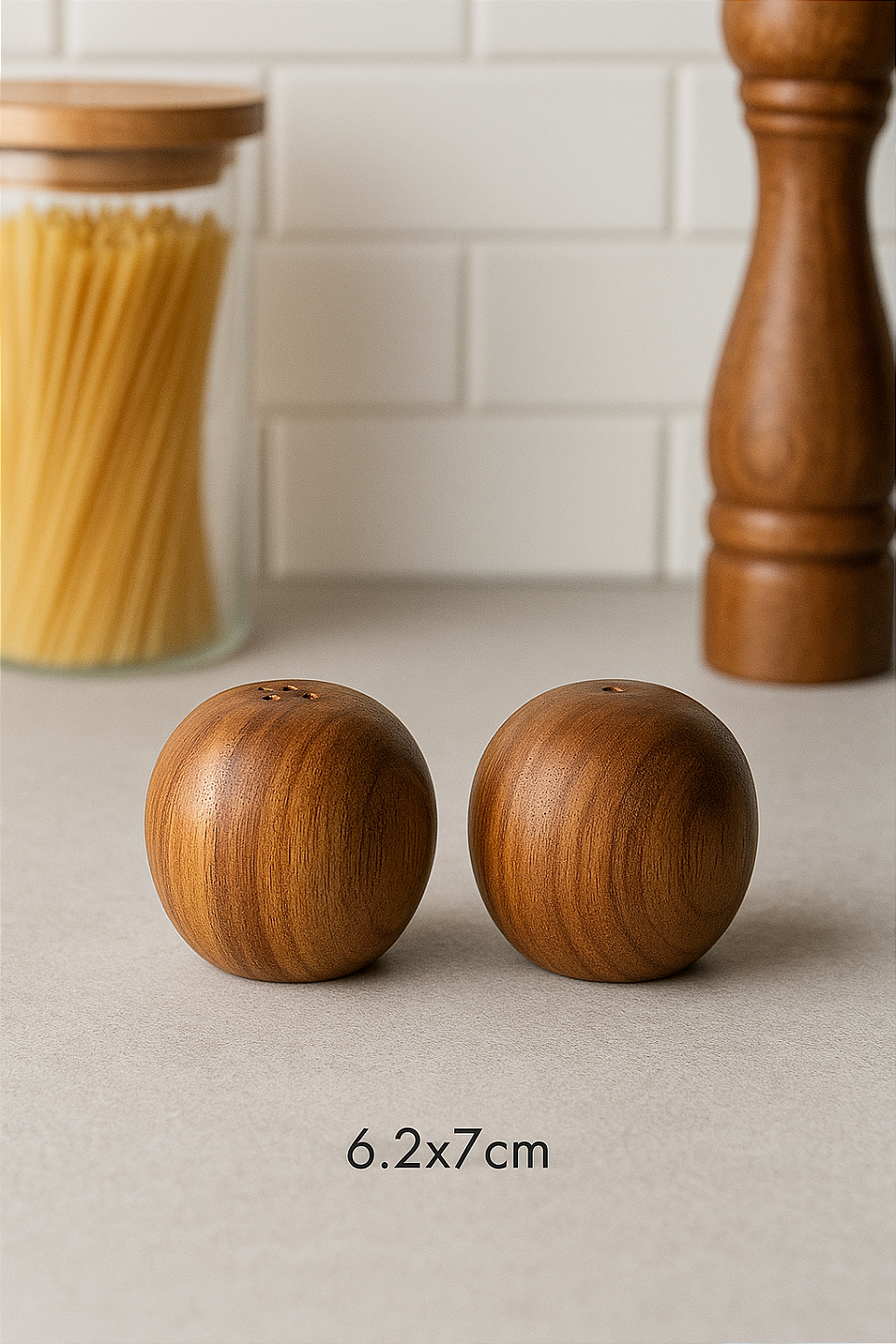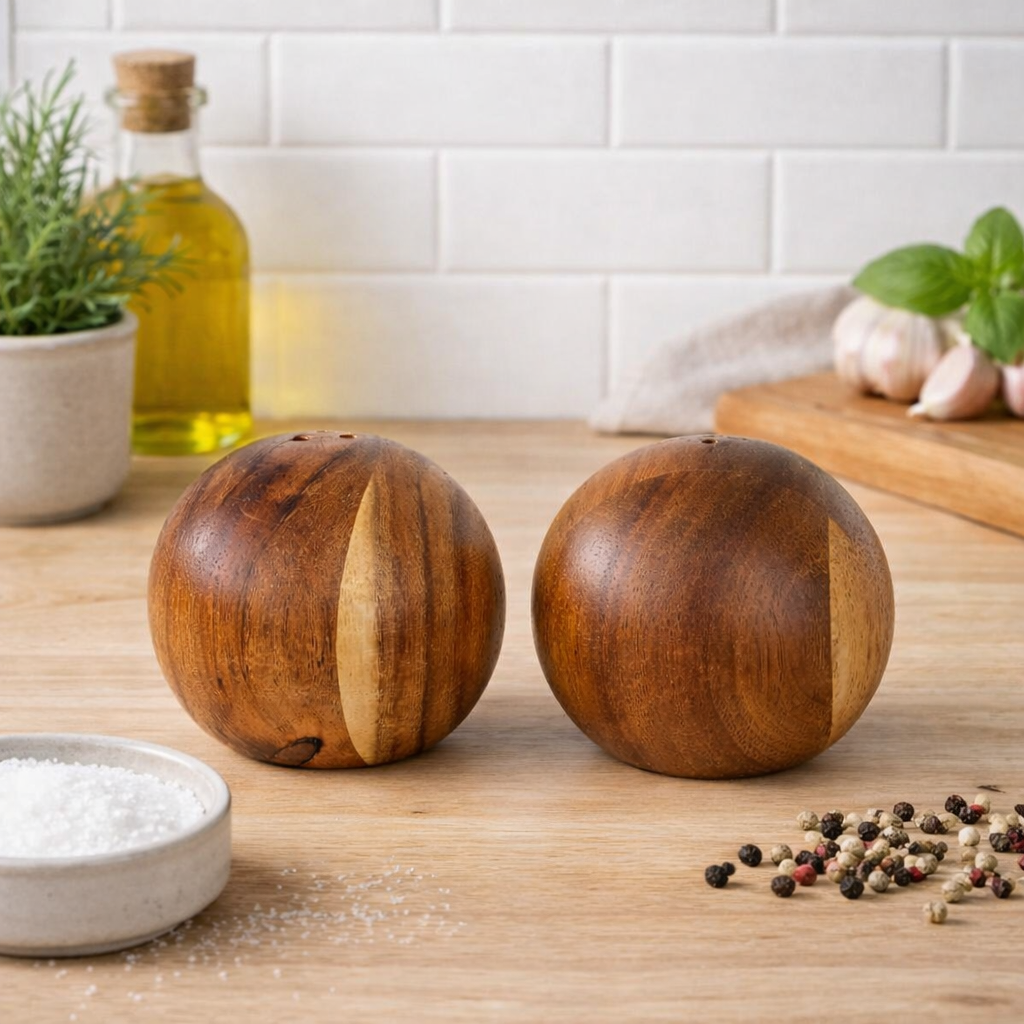 Traga charme natural e praticidade para a sua mesa com o saleiro e pimenteiro em madeira de acácia. Com design compacto de 6,2 × 7 cm, este conjunto combina funcionalidade com um visual moderno e acolhedor. A acácia oferece textura rica, resistência superior e um acabamento sofisticado que valoriza qualquer ambiente — da cozinha ao jantar especial.