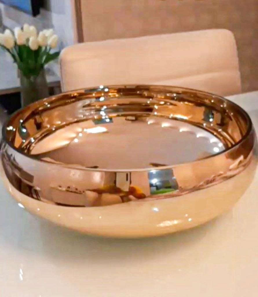 Vaso Decor de Vidro Dourado espelhado 28cm D Para arranjos Florais ou simplesmente como acessório de decoração