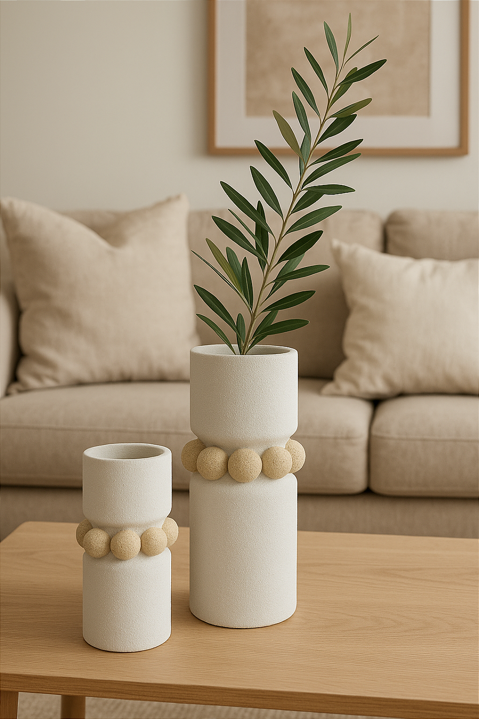 Vaso Decorativo em Cerâmica – Branco Bege (39,2 cm x 15D)