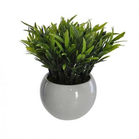 Vaso em cerâmica branca já montado em Panta Artificial na cor Verde.